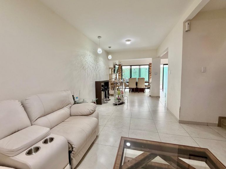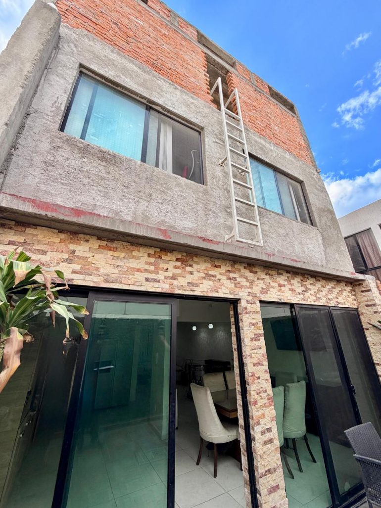 La casa cuenta con 119 metros cuadrados de terreno  con 2 plantas y una tercera en obra negra.