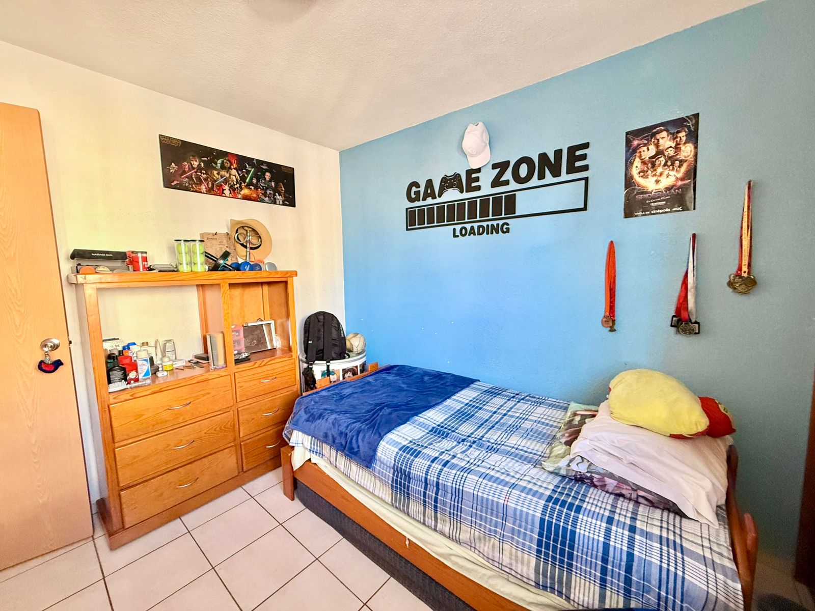 En Planta baja; cochera con portón eléctrico para 1 vehículo, sala comedor, cocina integral, ½ baño para visitas y recamara con closet y persiana. Área de lavado.