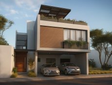Es un condominio con dos torres de departamentos, ( 8 depas cada torre), con una cochera con portón……